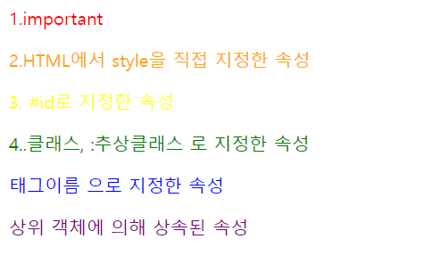 - 속성 값 뒤에 !important 를 붙인 속성 (사용을 지양합시다.)
