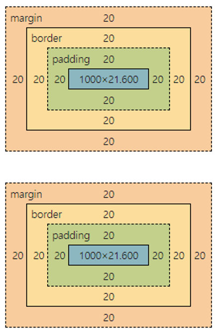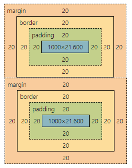 - 박스의 너비 = 20*2(border)+20*2(padding)+100(width)=220px.