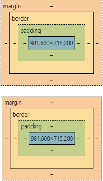 HTML/CSS에서 요소는 기본적으로 박스 형태이다. margin(바깥여백)-border(테두리)-padding(안쪽여백)-content(내용)으로 이루어져 있다.