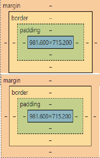 HTML/CSS에서 요소는 기본적으로 박스 형태이다. margin(바깥여백)-border(테두리)-padding(안쪽여백)-content(내용)으로 이루어져 있다.