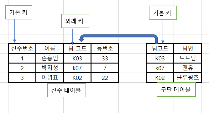 - 참조 무결성 - 참조할 수 없는 외래키(외부키) 값을 가질 수 없음