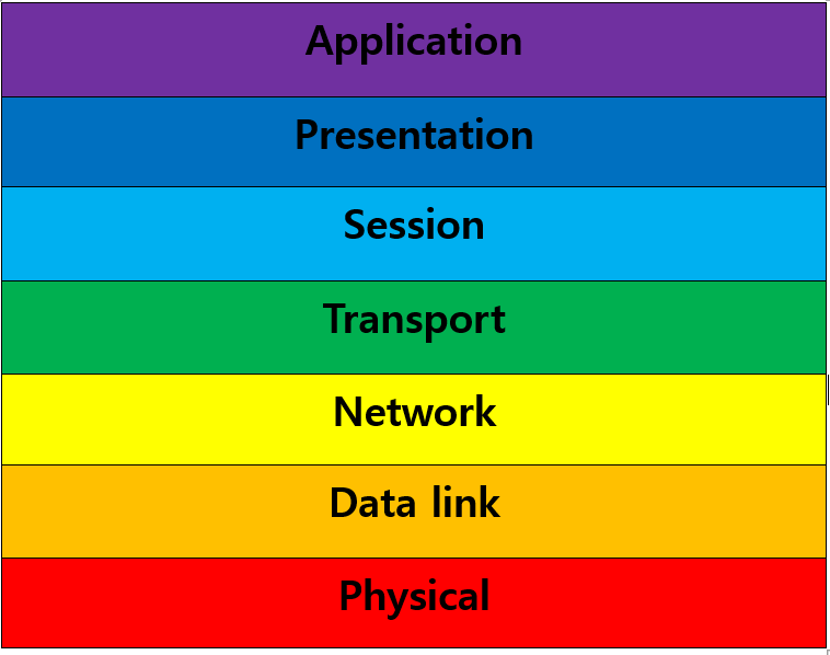 - 표준 프로토콜을 사용하여 다양한 시스템이 통신할 수 있도록 국제표준화기구(OSI)에서 제정한 개념 모델